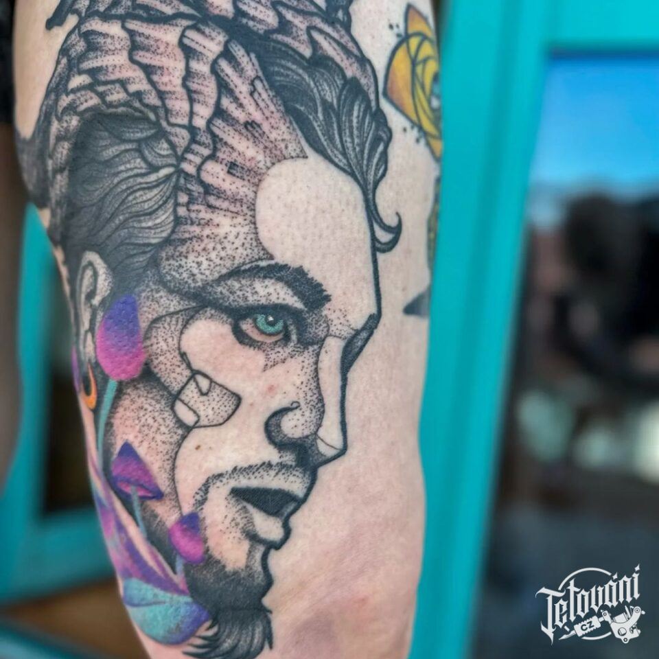 Tetování portrét na stehně