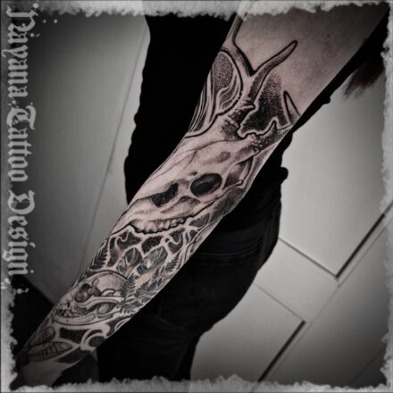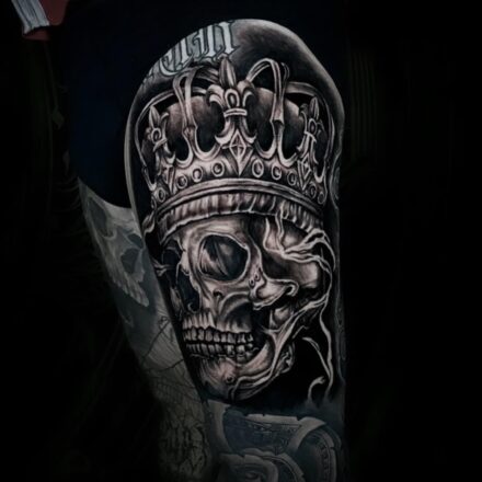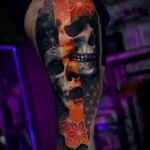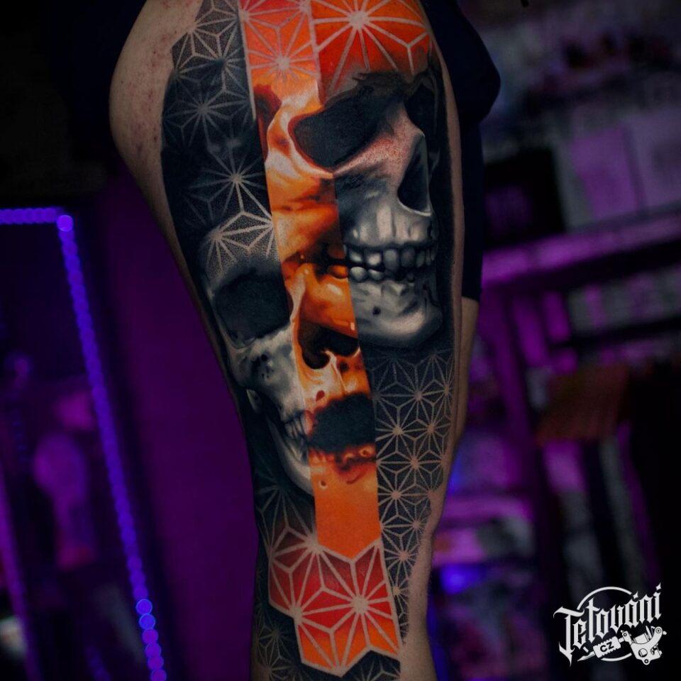 Tetování lebky na stehně