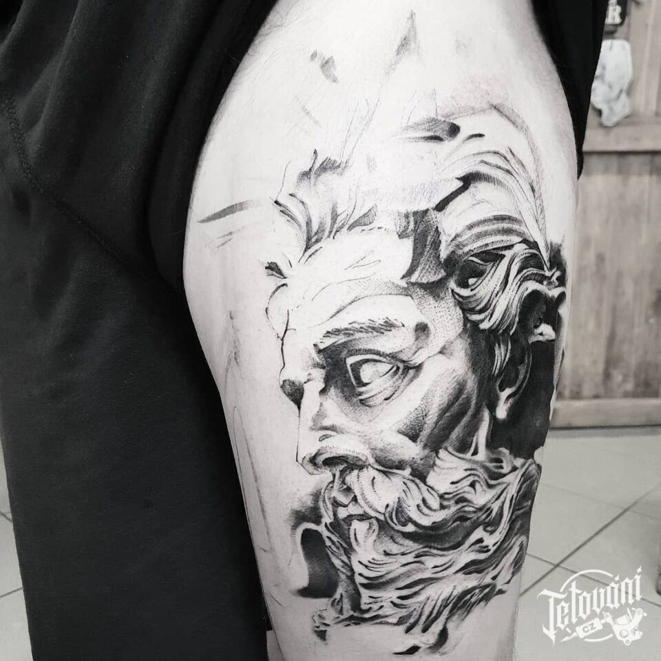 Tetování portrét na stehně