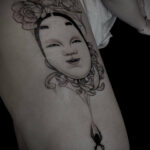 Tetování portrét na stehně
