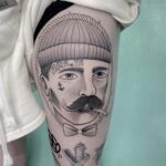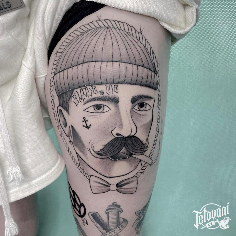Tetování portrét na stehně