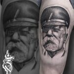 Tetování portrét na stehně