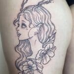 Tetování portrét na stehně