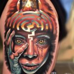 Tetování portrét na stehně