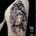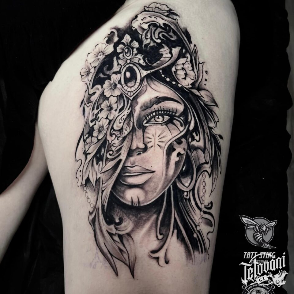 Tetování portrét na stehně