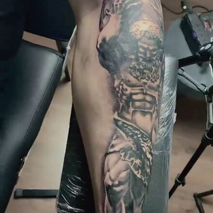 Tetování portrét na stehně