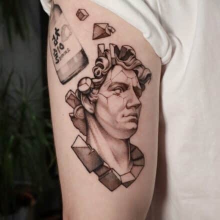 Tetování portrét na stehně