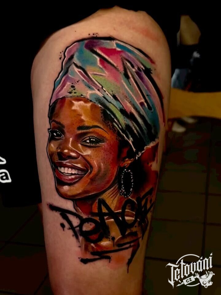 Tetování portrét na stehno