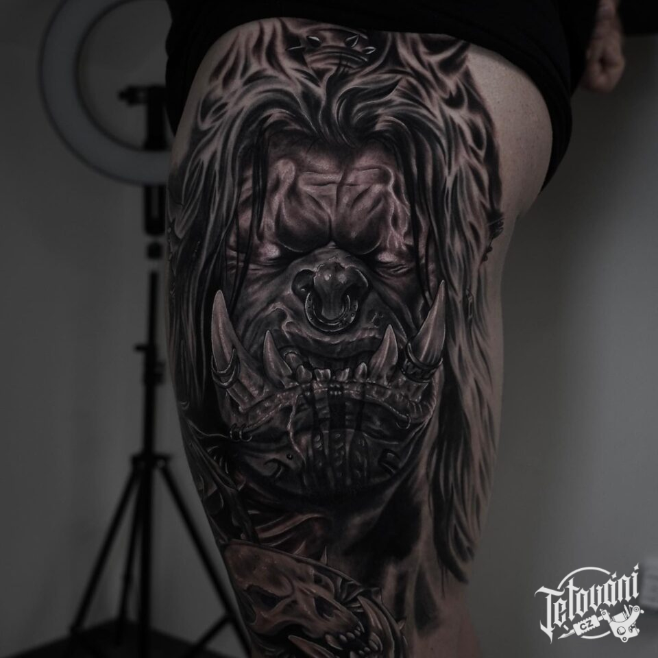 Tetování portrét nadpřirozená bytost na bok stehna