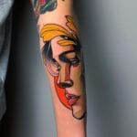 Tetování portrét obličeje s listy stromu na předloktí