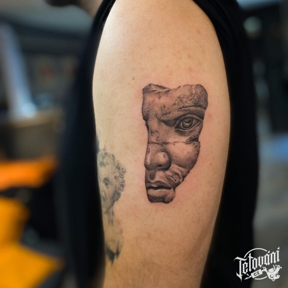 Tetování portrét, oko, symboly na rameno