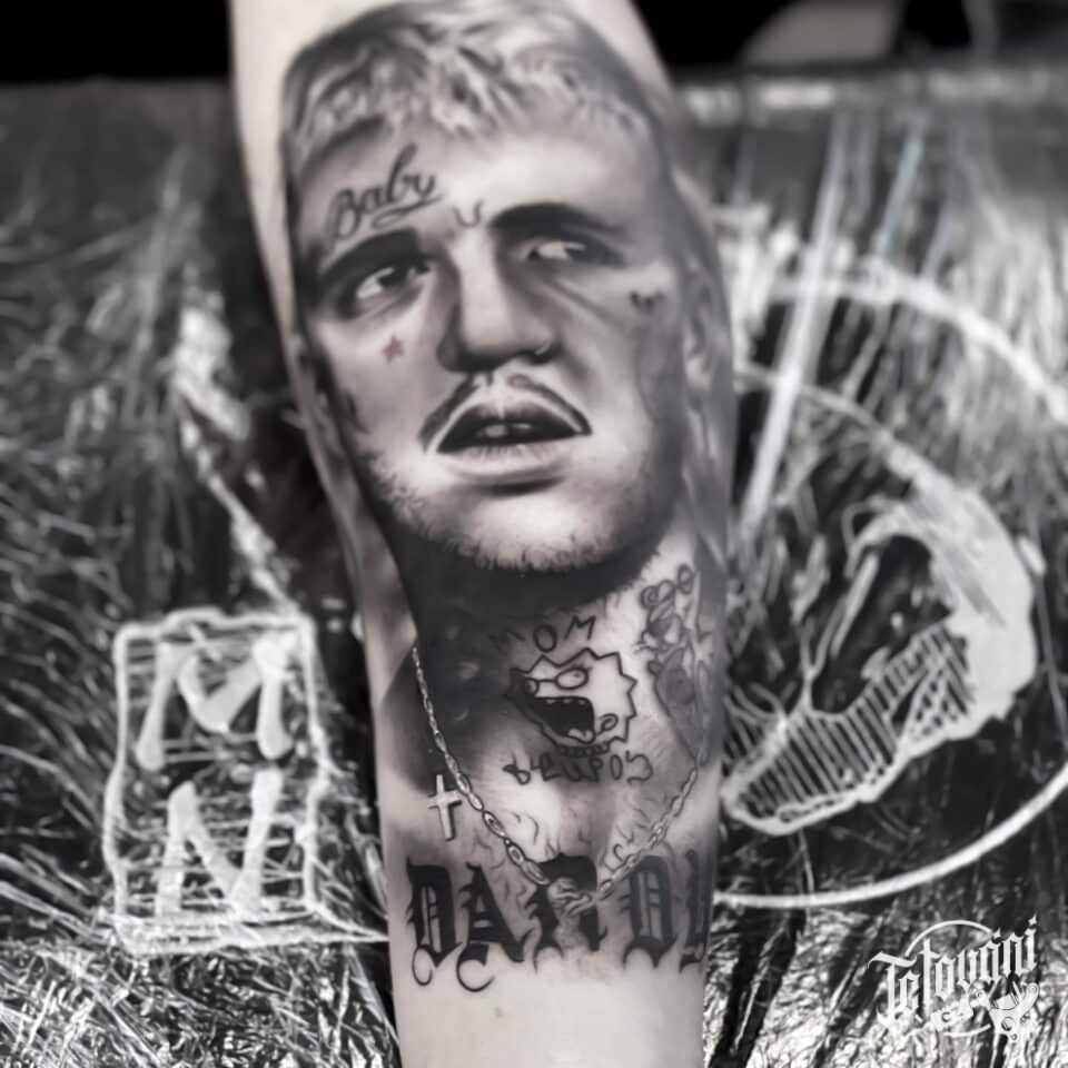 Tetování portrét, osobnost Lil Peep na předloktí