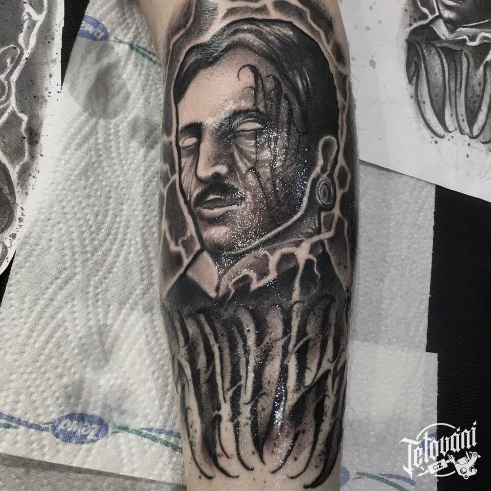 Tetování portrét, osobnost, nápisy, písmena na lýtko