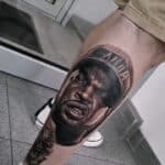 Tetování portrét osobnosti, Ice Cube na lýtku