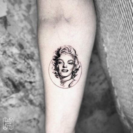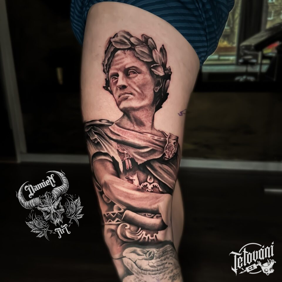 Tetování portrét osobnosti Julius Caesar na bok stehna