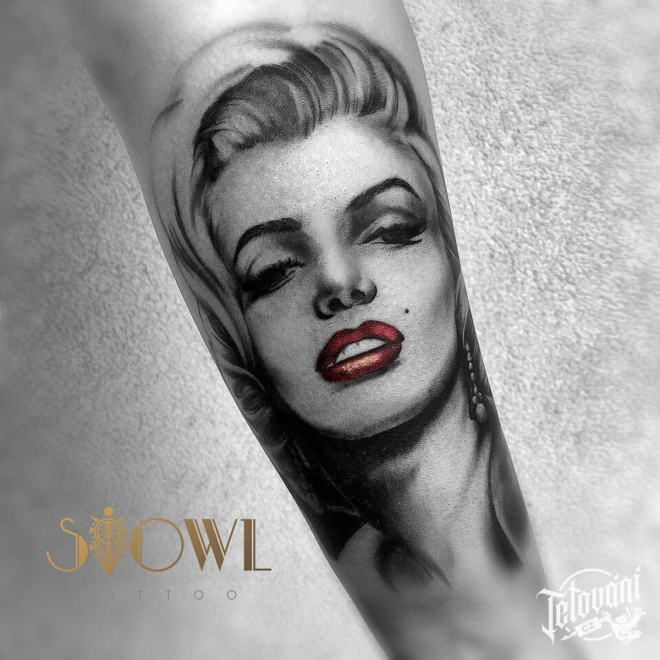 Tetování portrét osobnosti Marilyn Monroe na předloktí