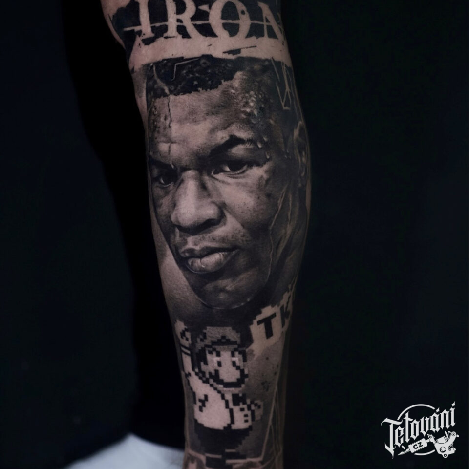 Tetování portrét osobnosti Mike Tyson na předloktí
