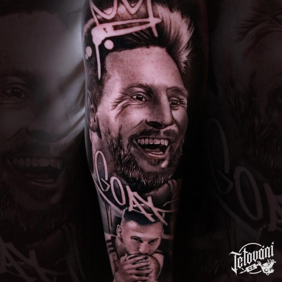 Tetování portrét osobnosti na holeň