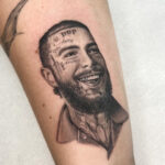 Tetování portrét osobnosti Post Malone na předloktí