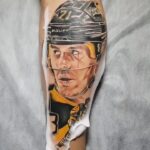 Tetování portrét osobnosti, sport, hokej na lýtku