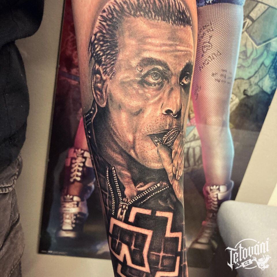 Tetování portrét osobnosti Till Lindemann, hudba na předloktí