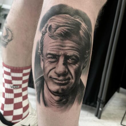 Tetování portrét osobnosti Till Lindemann na lopatku