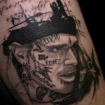 Tetování portrét osobnosti Yzomandias na stehno