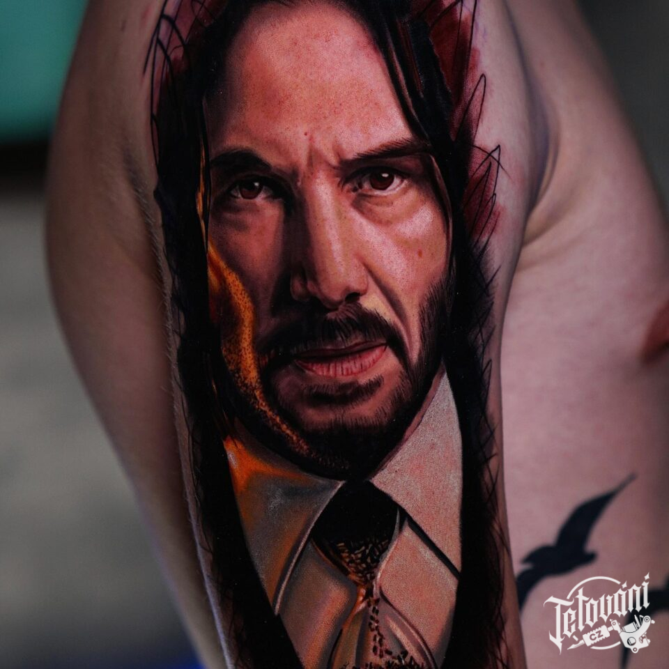 Tetování portrét osobnosti z filmů a pohádek John Wick na rameno