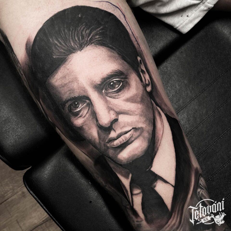 Tetování portrét osobnosti z filmů a pohádek Kmotr na předloktí