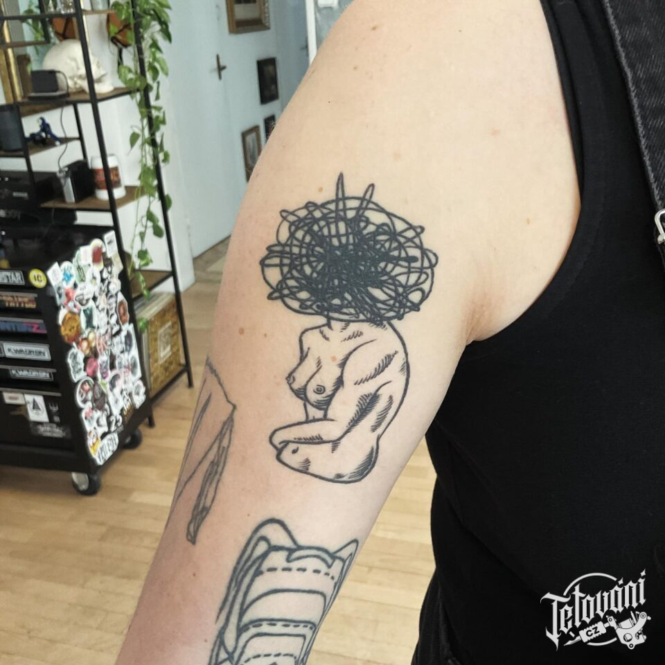 Tetování portrét, postava ženy na rameni