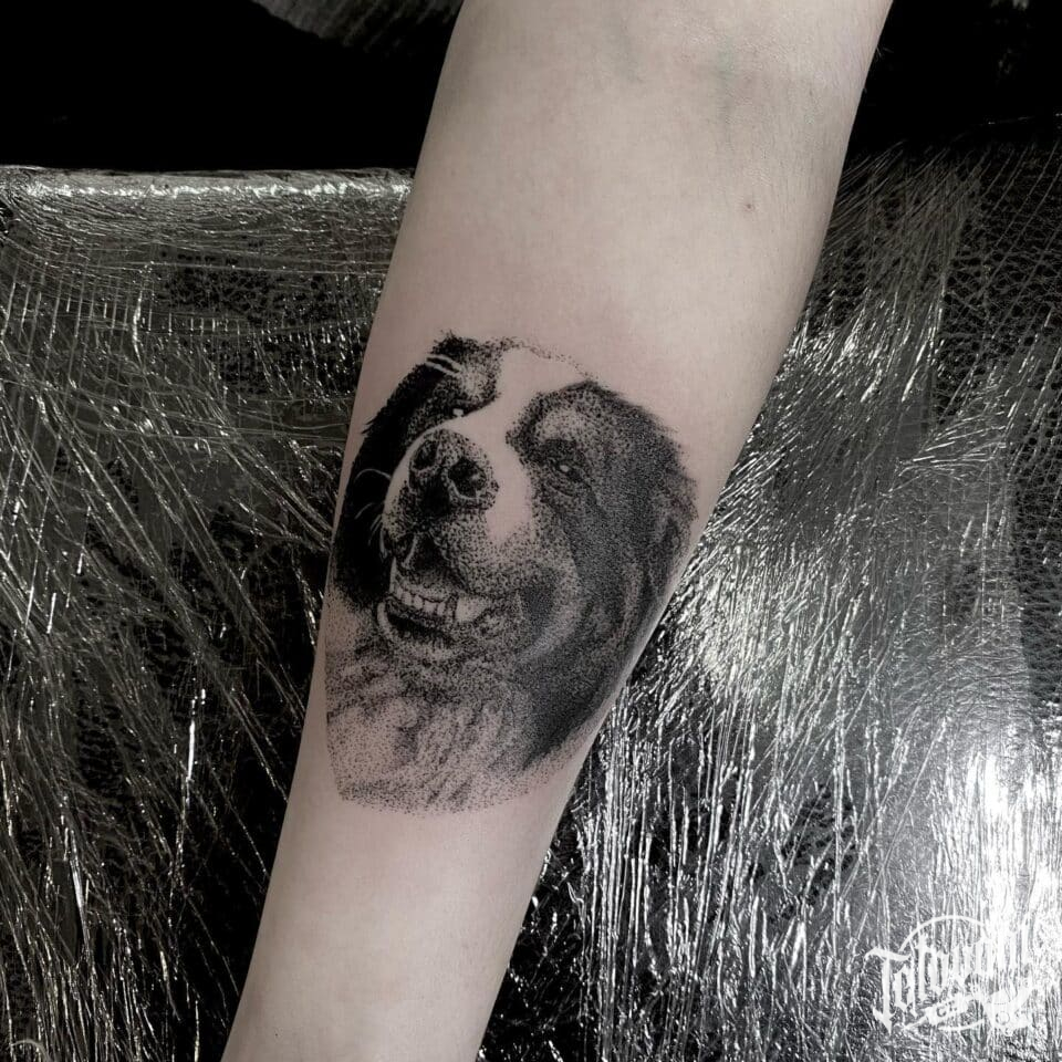 Tetování portrét psa, zvíře na předloktí