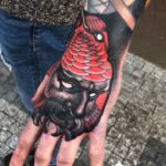 Tetování portrét, pták na hřbet ruky