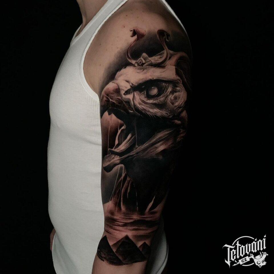 Tetování portrét pták, symboly na rameno