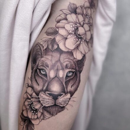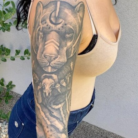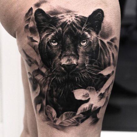 Tetování portrét pumy, zvíře na lopatku