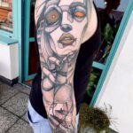 Tetování portrét, ruka, srdce, rukáv