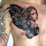 Tetování portrét růže na prsa