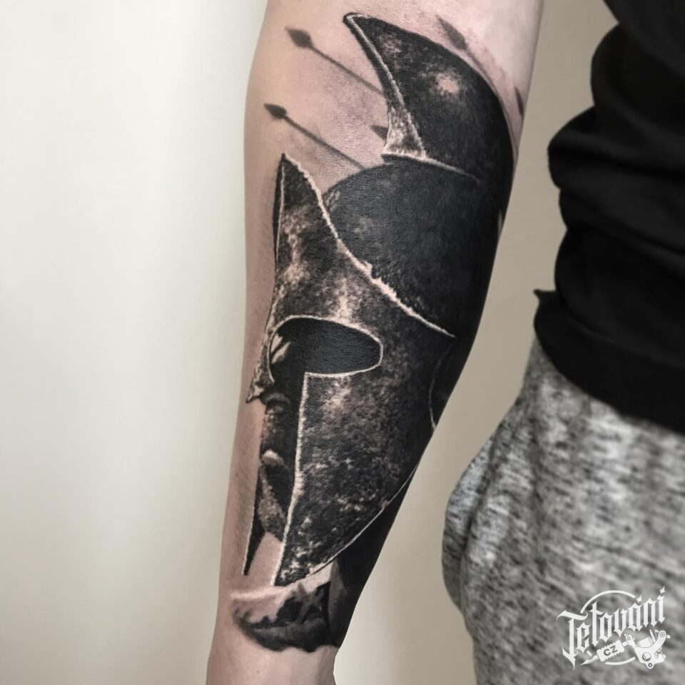 Tetování portrét, rytíř na předloktí