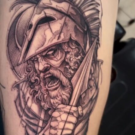 Tetování portrét, rytíř s mečem na rameno