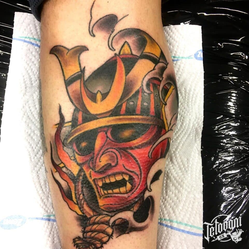 Tetování portrét rytíře na lýtko