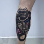 Tetování portrét s hadem na lýtku