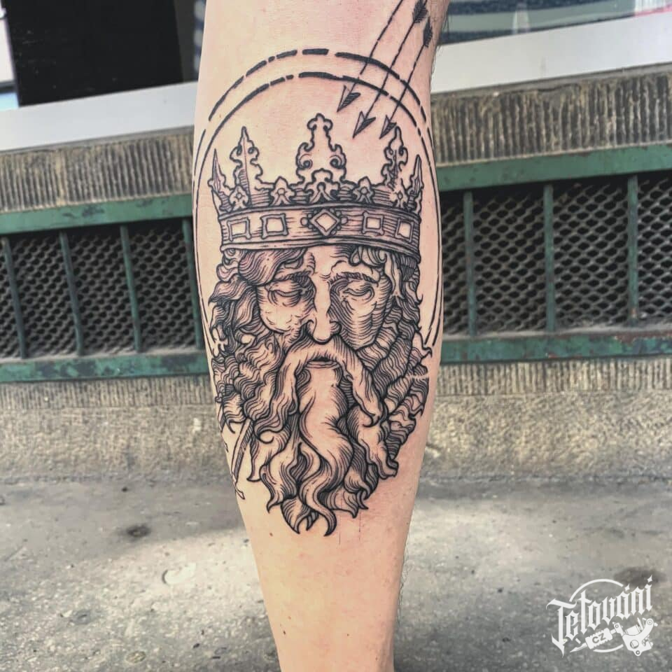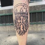 Tetování portrét s korunou na lýtku