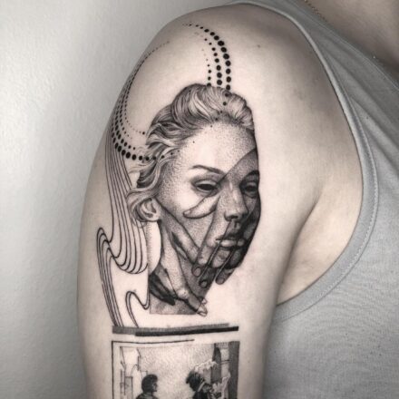 Tetování portrét s květ...