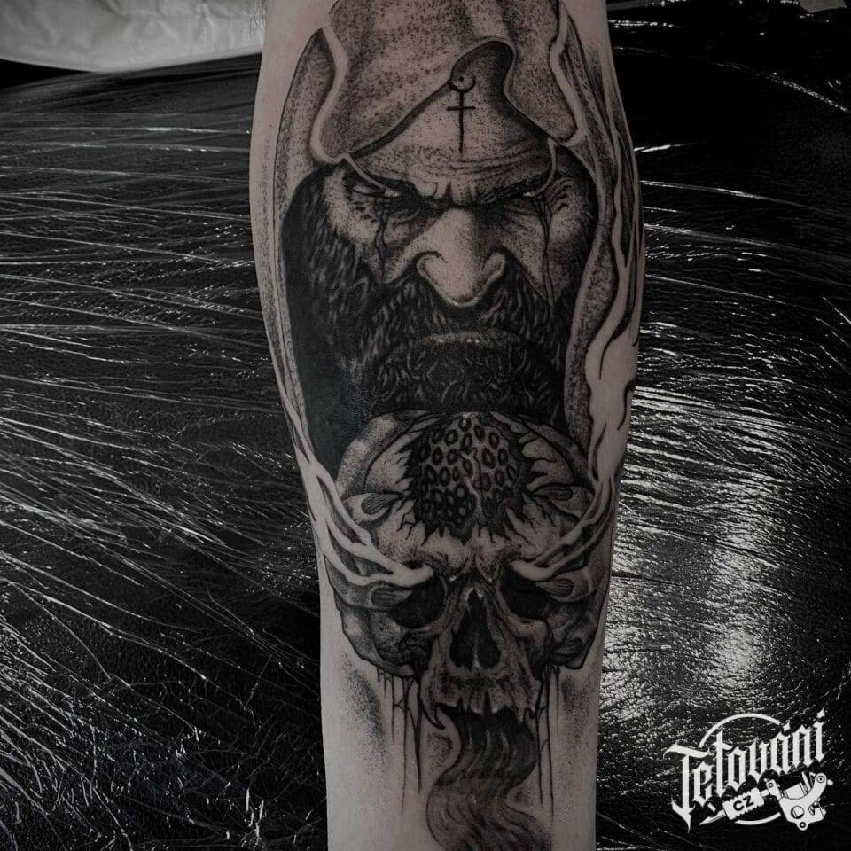 Tetování portrét s lebko...
