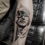 Tetování portrét s lebkou na předloktí