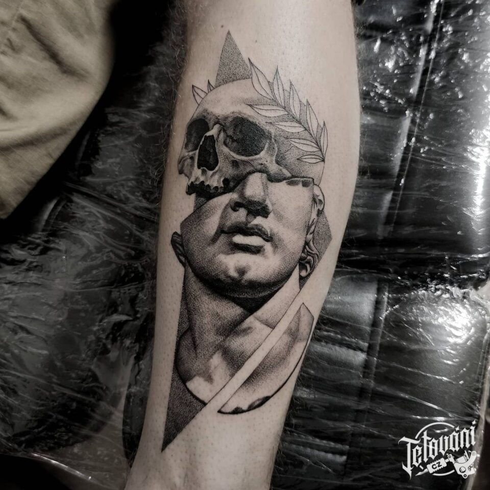 Tetování portrét s lebko...