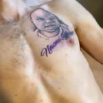 Tetování portrét s nápisem na hrudi