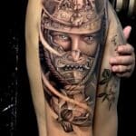 Tetování portrét Samuraj na paži
