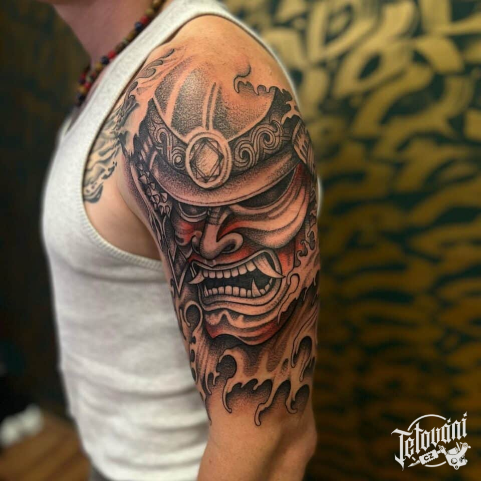 Tetování portrét samuraje na rameno