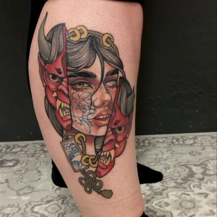 Tetování portrét, socha na lýtko