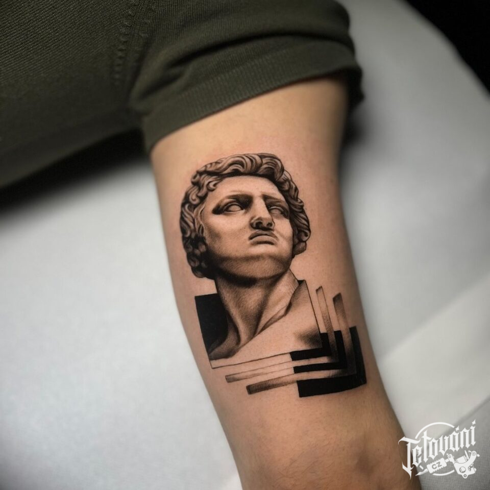 Tetování portrét sochy na paži